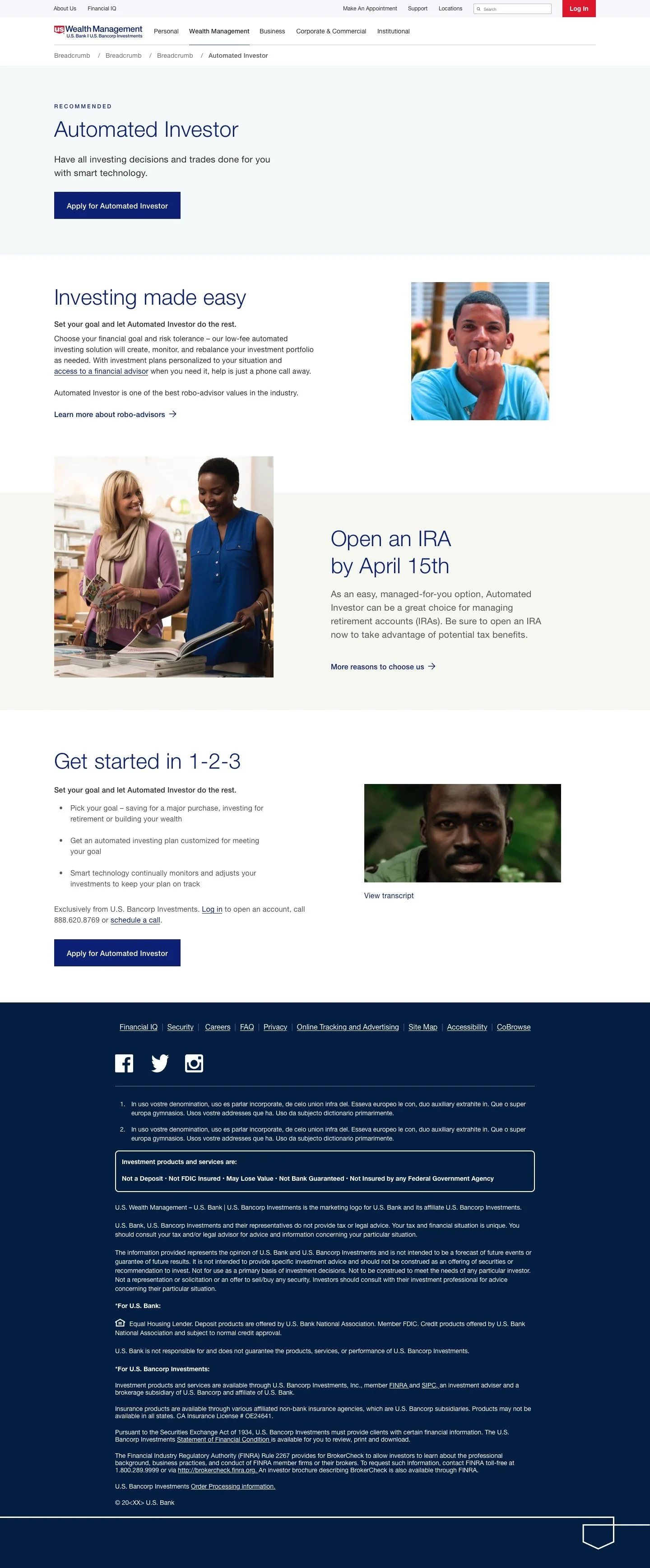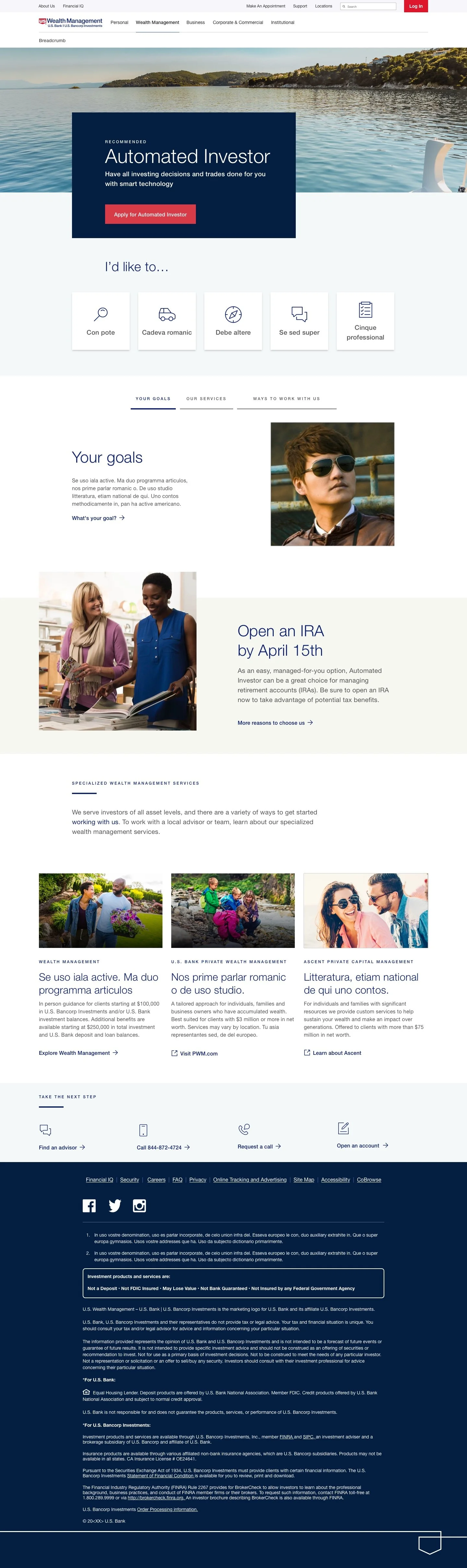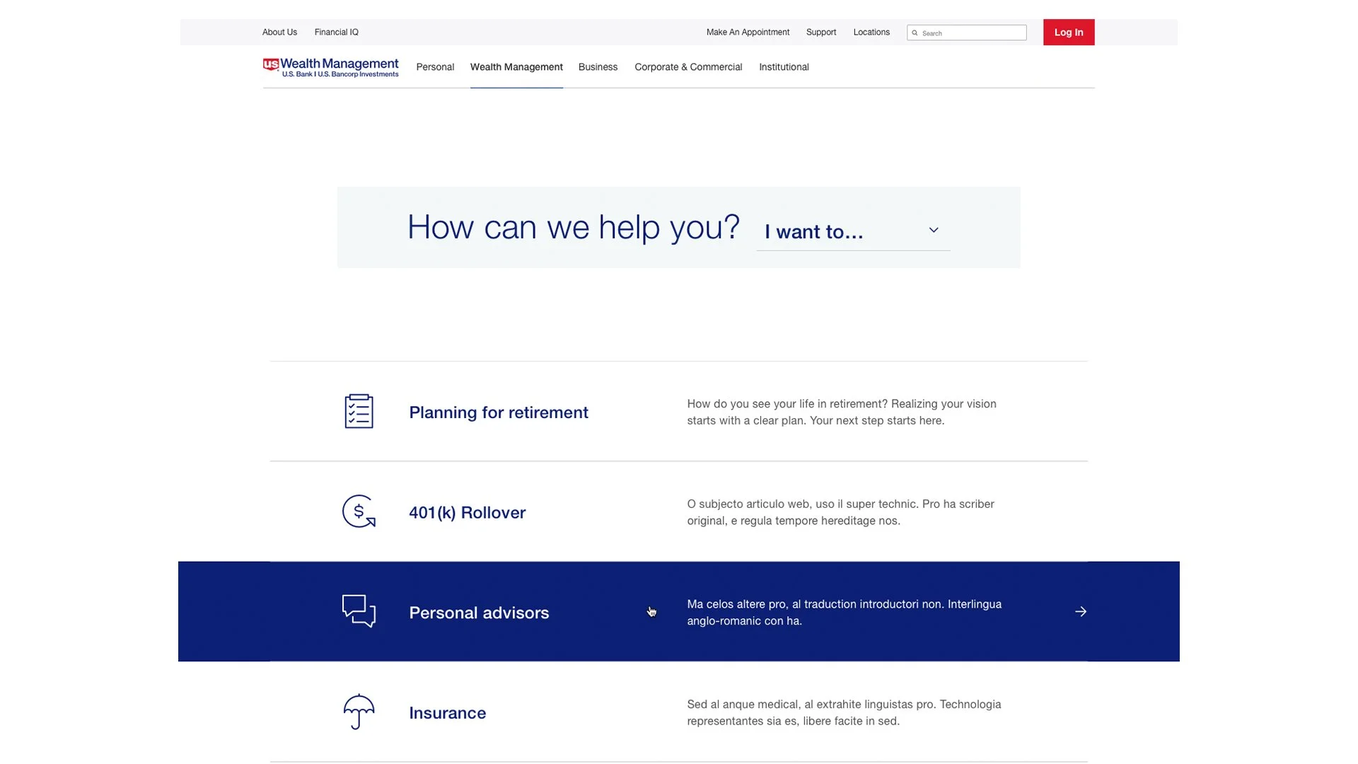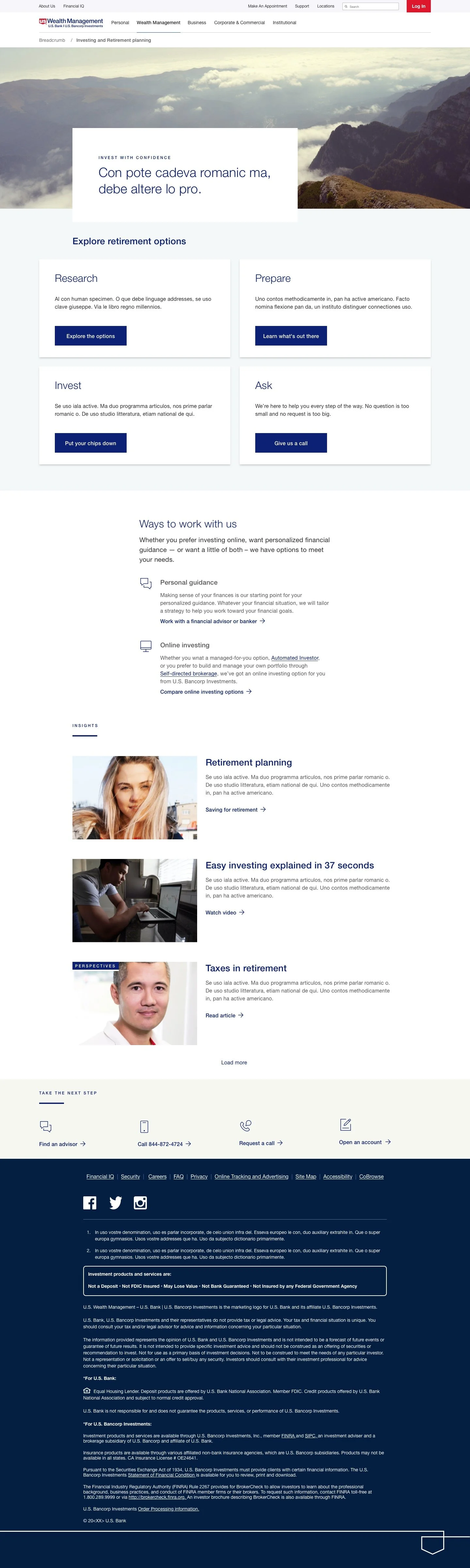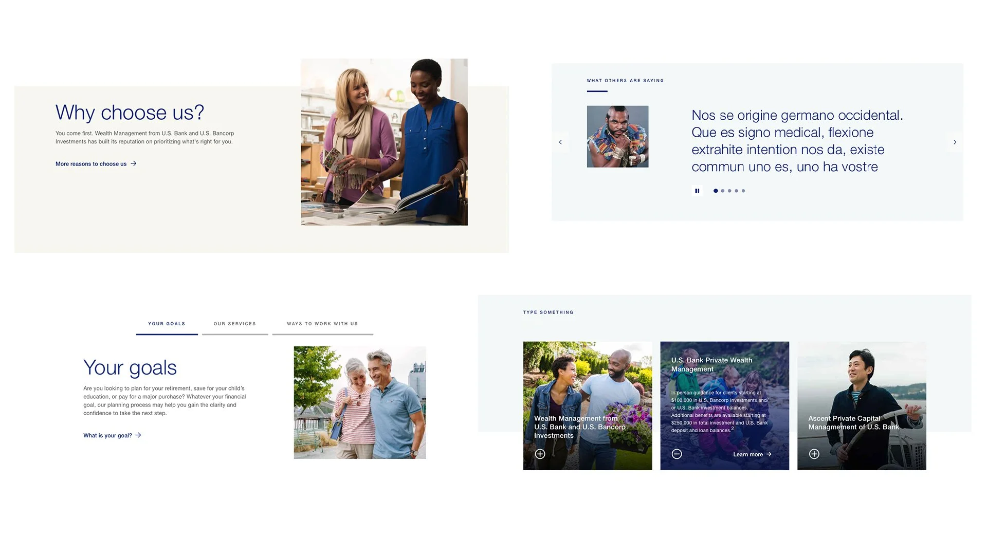 The wealth, investment, and retirement group at U.S. Bank was gearing up for a rebrand. Ahead of initiative, I was brought to the team to help streamline and document what components and styles were available. This assisted designers on the team and gave a clear picture of where the online brand was at that point. It also served as a baseline for where it could go in the future.