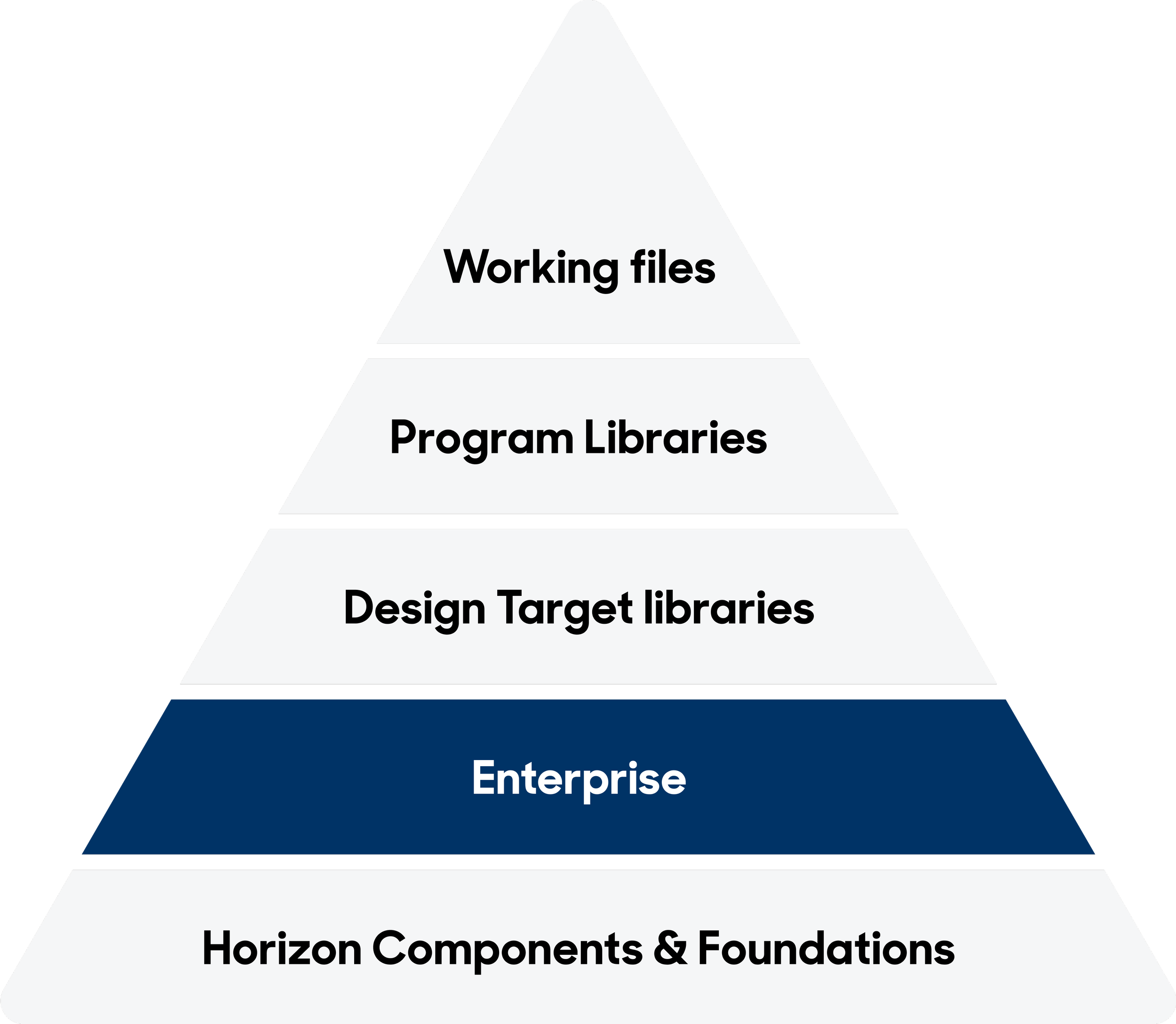 This library was basically the layer “before” the system; like the second step within the pyramid. It contained components that were shared to some extent, but was without live code or documentation. It was viewed as a soft backlog for the system.